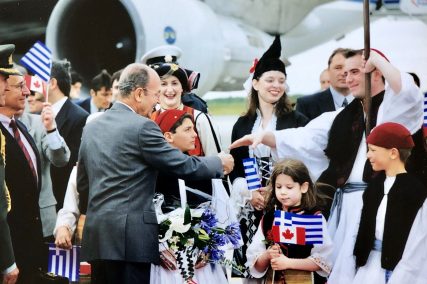 On May 27th, 2000, the President of the Hellenic Republic Konstantinos Stephanopoulos visited Canada as an official guest of Her Excellency, the Governor General of Canada, Ms. Adrienne Clarkson. The Hellenic Community of Ottawa along with Greek Representatives from other cities in Canada, welcomed President Stephanopoulos at the military airport in Ottawa. The next day, His Excellency attended the Divine Liturgy officiated by His Eminence Metropolitan Sotirios of Toronto, at the Dormition of Virgin Mary Greek Orthodox Church. That same evening, the President met with leaders of the Hellenic Associations and Societies of Ottawa and attended a sold-out dinner which was hosted in His honour, by the Community at the Hellenic Banquet Hall.